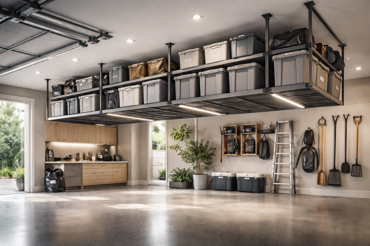 Take advantage of overhead space to store seasonal items, gear, and essentials without crowding your garage floor. A practical, well-designed solution that helps your space feel larger, calmer, and more functional.